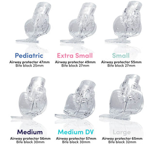 Carefully designed for all ages, our posterior mouthpieces come in 6 sizes. Each size has tailored airway protector and bite block measurements to minimize gag reflexes while maximizing isolation.